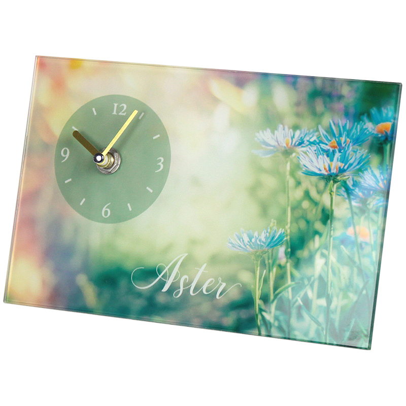 ガラスアートピクチャーデスククロック フラワー D