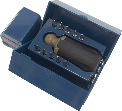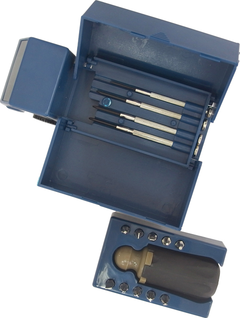 使っていないときは飾れる遊び心満点の工具セット。トラックには精密ドライバーと、10個の先端が選べるドライバーのセットが入っています。